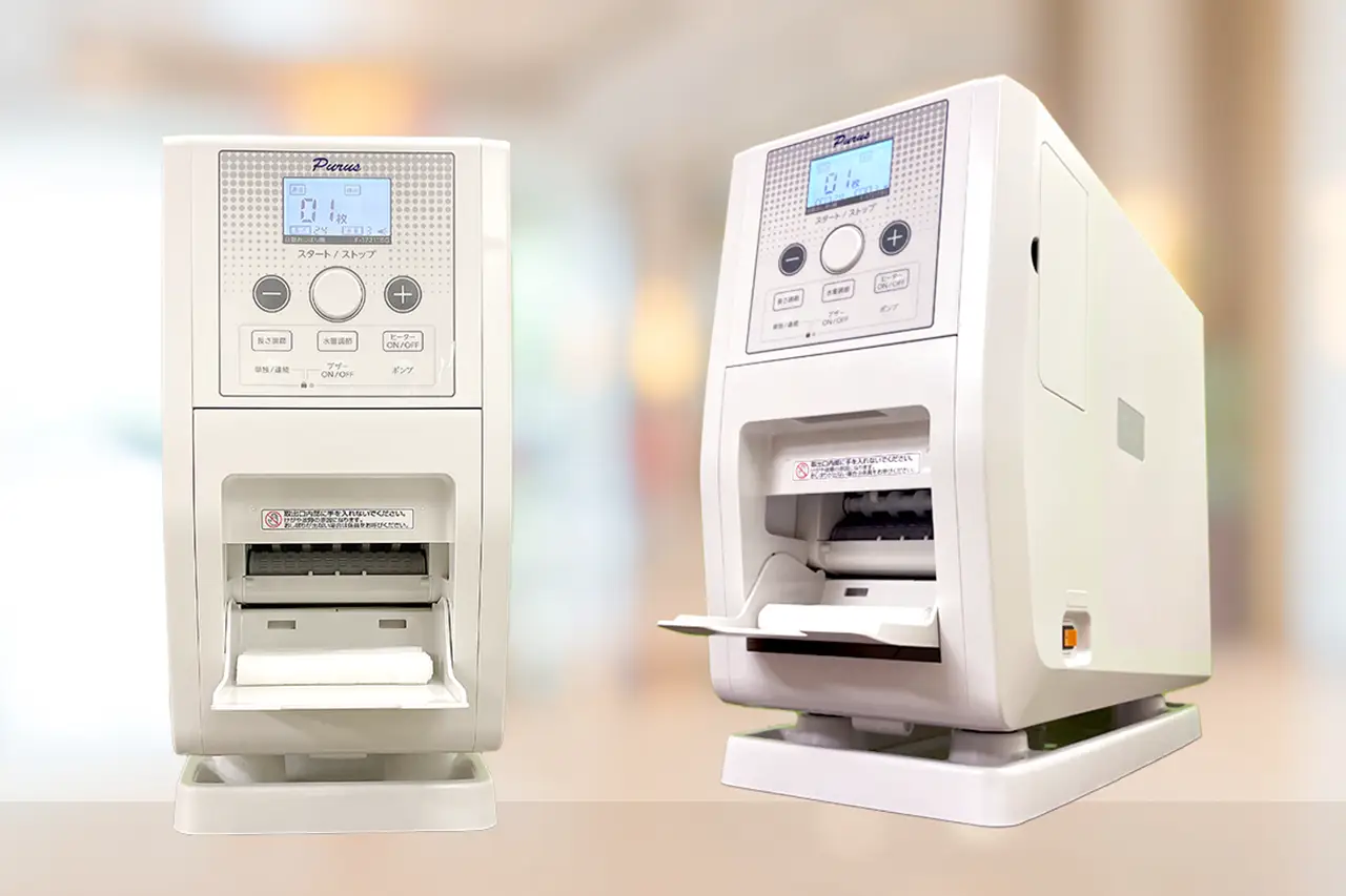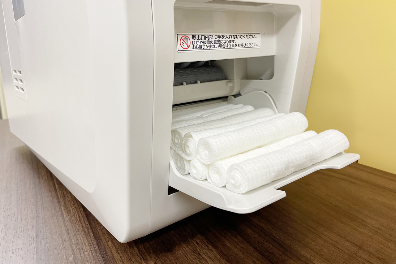 ボタンひとつでおしぼりを自動作成。手間がかからず、忙しい現場でもスムーズに対応できる操作性が支持されています!